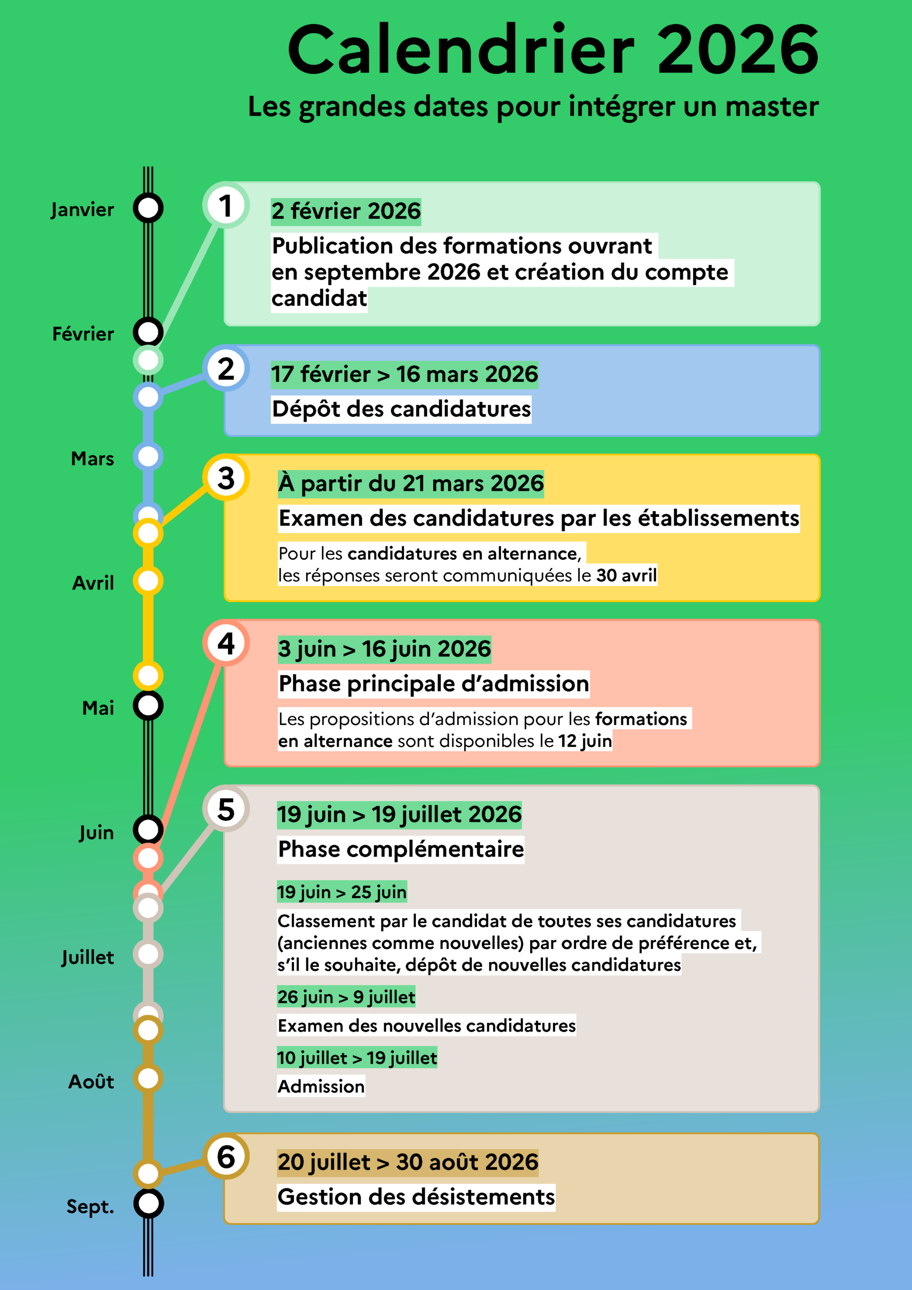 Dès le 17 février, dépose tes candidatures sur la plateforme Mon Master, et formule jusqu’à 30 vœux initiale ou en alternance jusqu’au 16 mars.